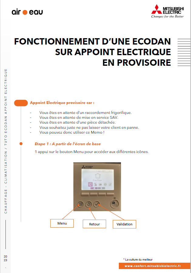 Fonctionnement d’une Ecodan sur appoint électrique en provisoire