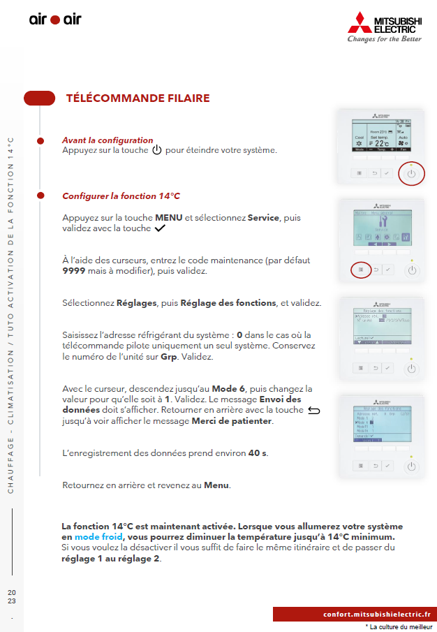 Activer la fonction 14°C en mode froid sur les Mr Slim Génération 2