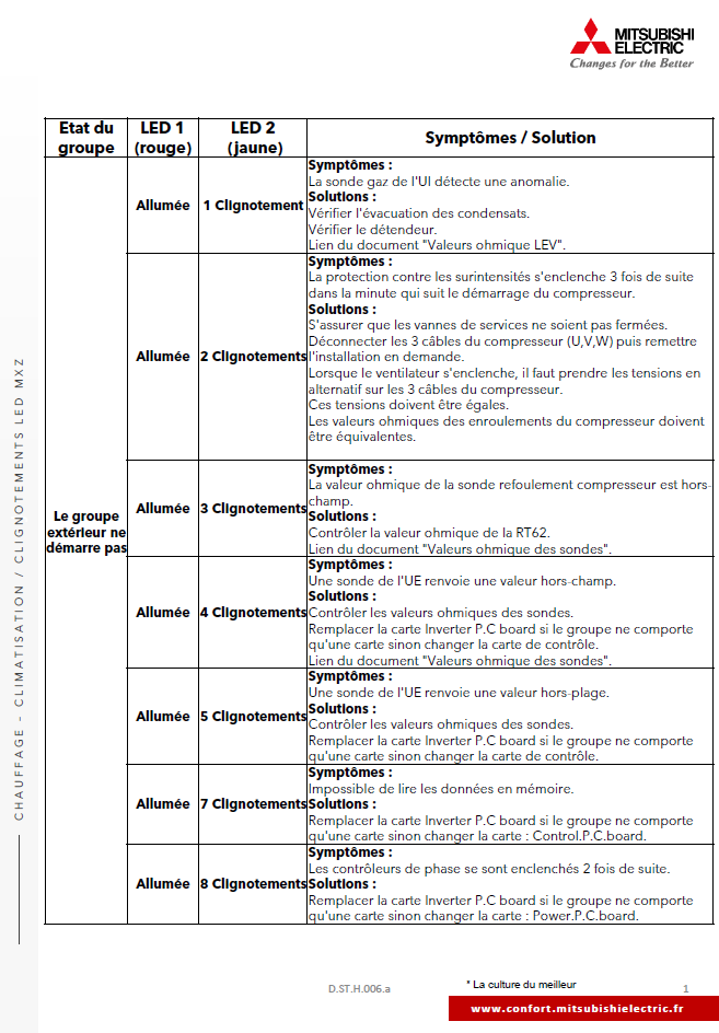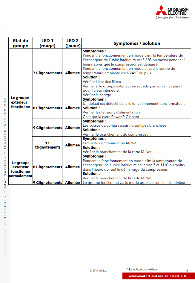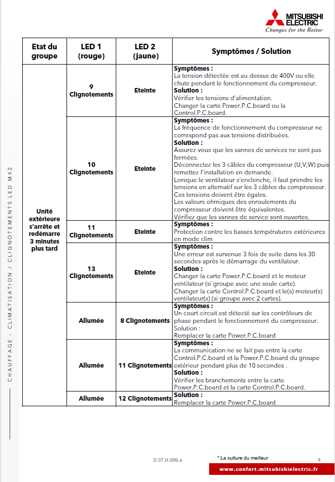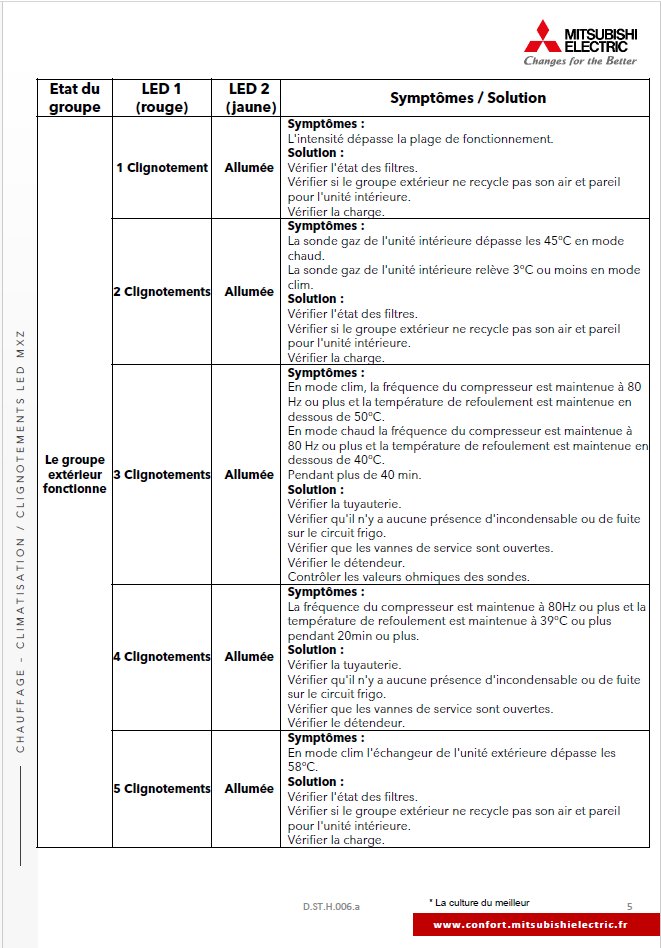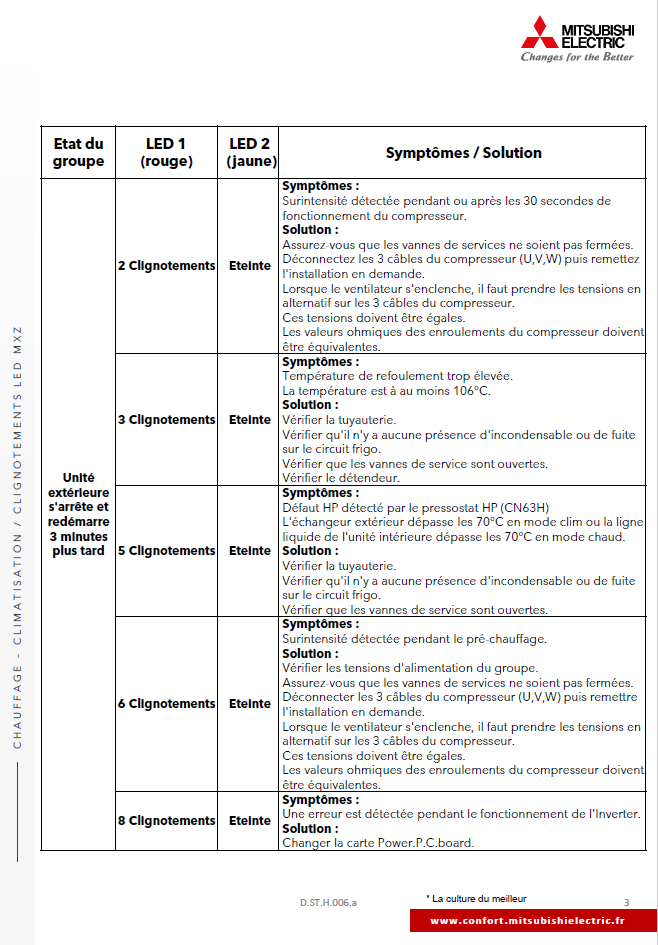 Clignotements LED UE MXZ