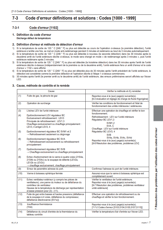 1102 - PURY-PUHY-YNW- Défaut haute température de refoulement. (Plus de détail en téléchargeant la fiche de dépannage)