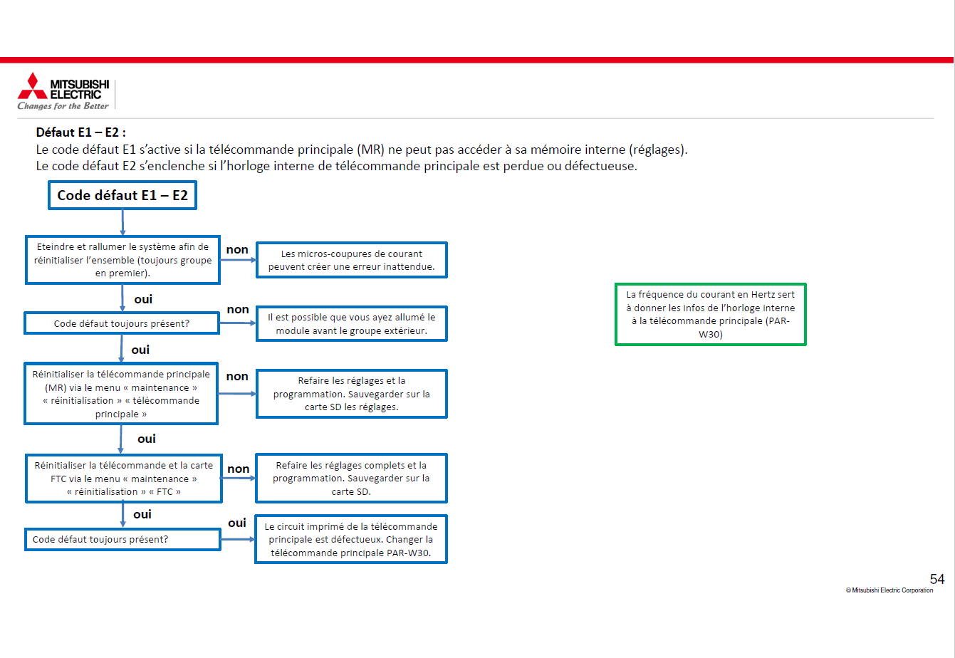 Le code défaut E1 s’active si la télécommande principale (MR) ne peut pas accéder à sa mémoire interne (réglages).