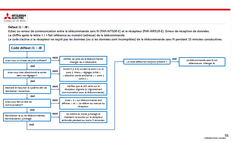Echec ou erreur de communication entre la télécommande sans fil (PAR-WT50R-E) et le récepteur (PAR-WR51R-E). Erreur de réception de données.