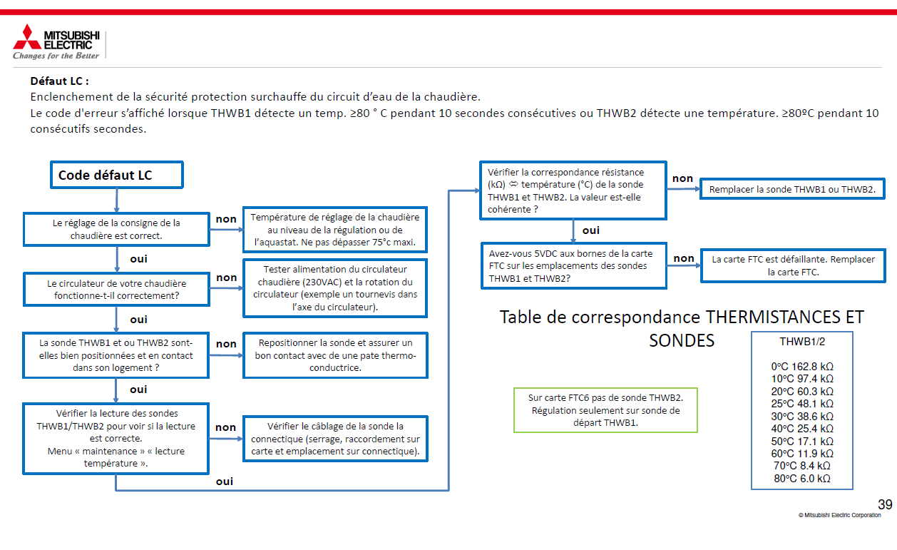 Le code d'erreur s’affiché lorsque THWB1 détecte un temp. ≥80 ° C pendant 10 secondes consécutives ou THWB2 détecte une température. ≥80ºC pendant 10