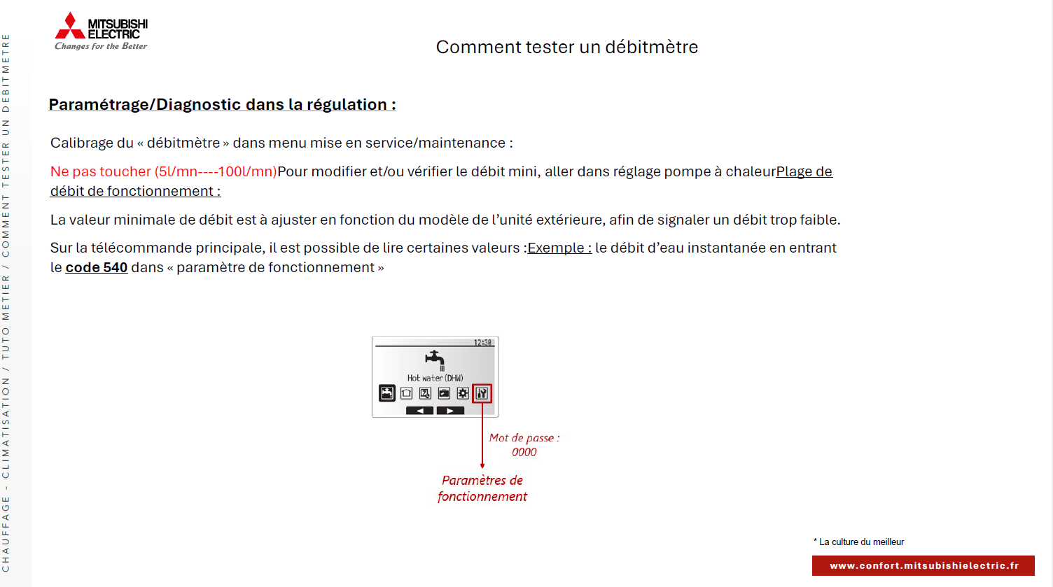 Comment tester un débitmètre sur nos Ecodan hydrobox de génération C et D