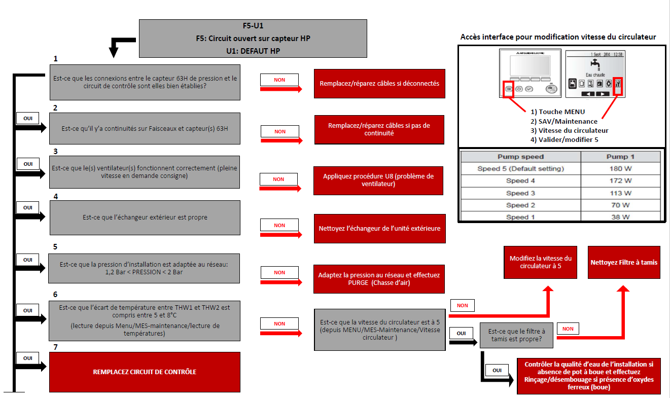 Défaut F5-U1 – Groupe extérieur Mr Slim & Ecodan