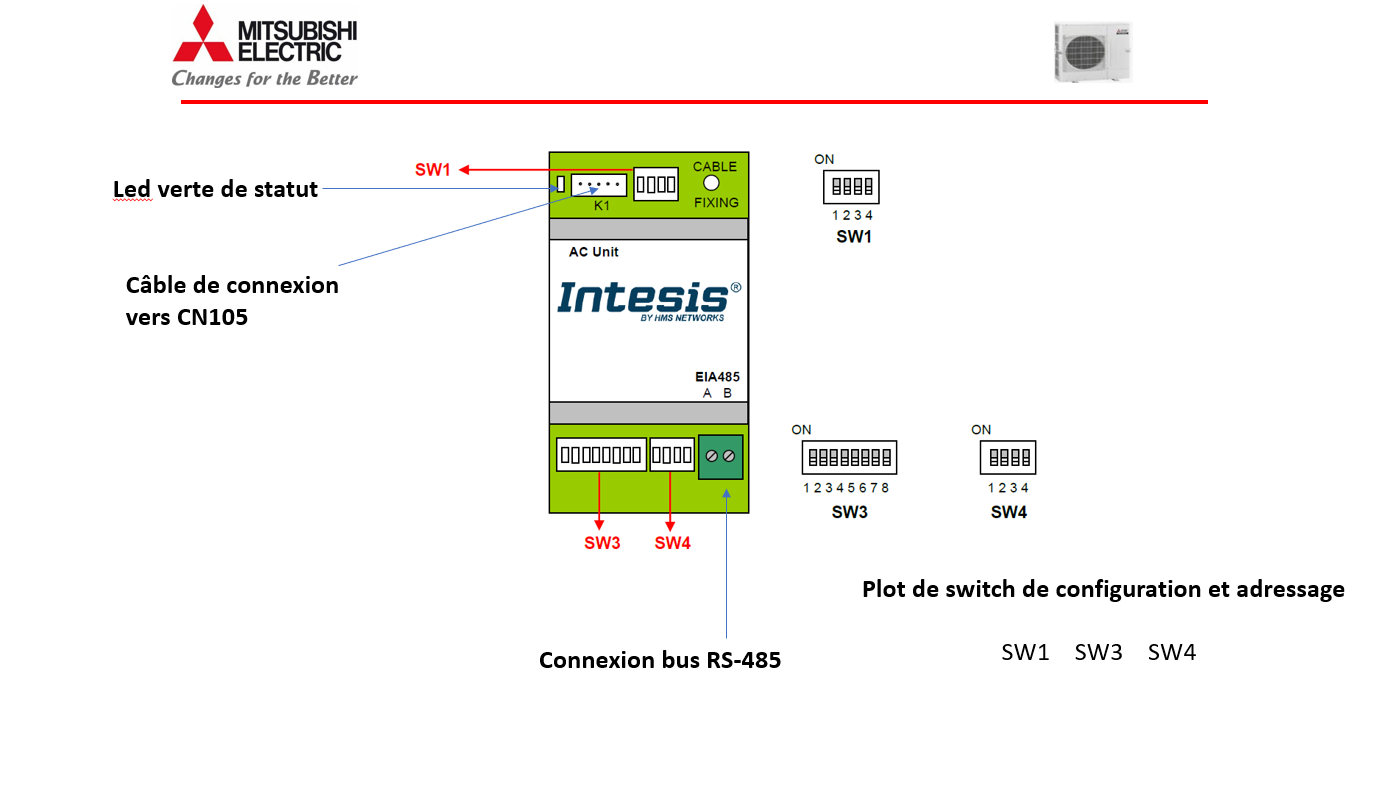 Raccordement et adressage d’une interface ME-AC-MBS-1 Modbus