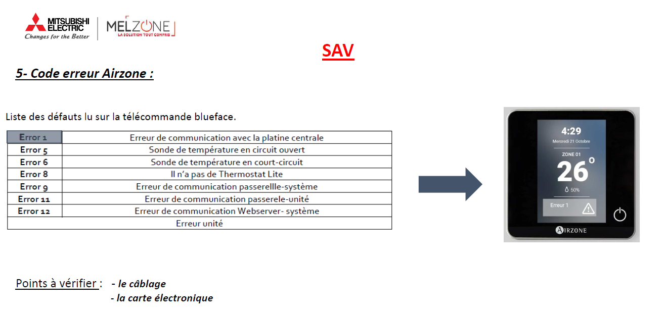 Tutoriel MELZONE - Liste des codes erreurs