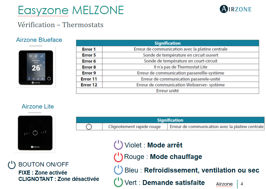Tutoriel MELZONE - SAV Vérifications et codes erreurs thermostat
