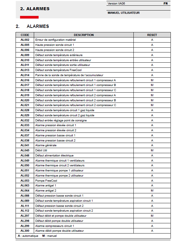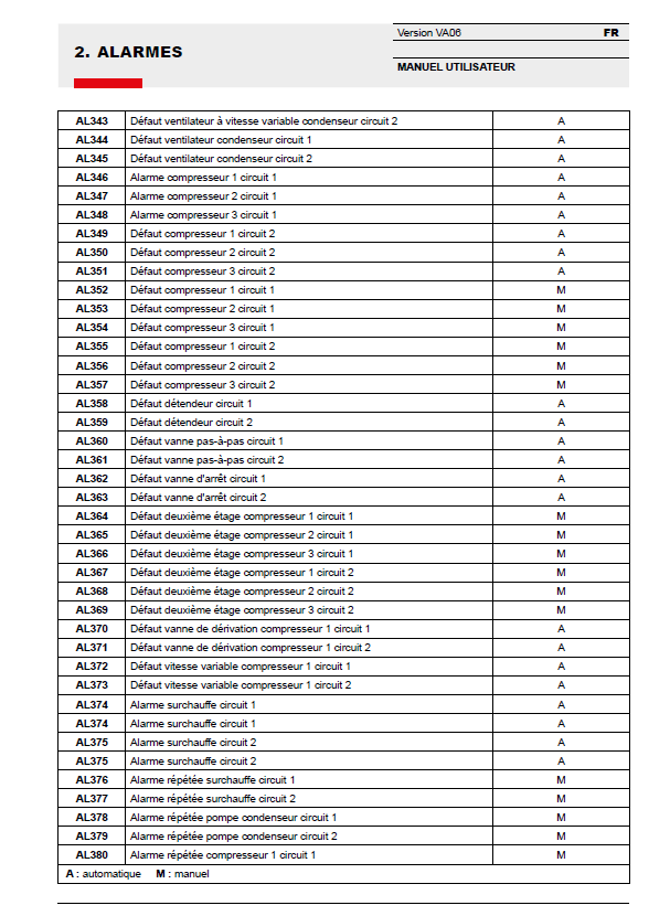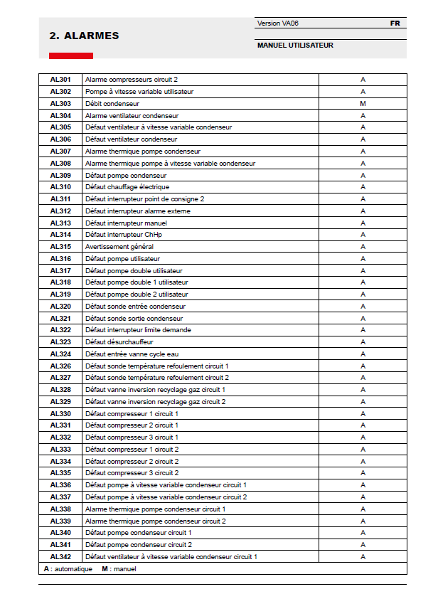 Navigation W3000X+ Liste des Alarmes - Siemens - CLIMAVENETA